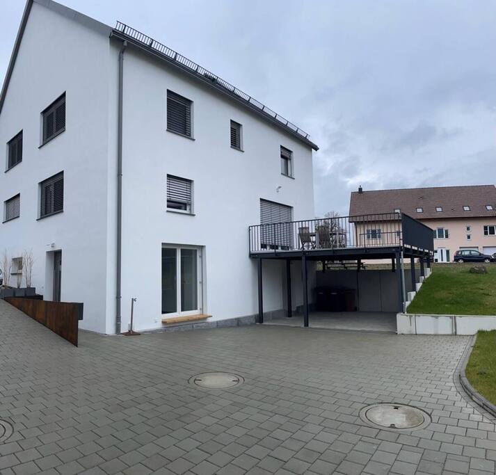 Welcome to idyllic Hegau – your retreat near Lake Constance! This charming, two-story holiday home with 120 m² of living space is ideal for a relaxing family holiday. Plenty of space for everyone Three stylishly furnished bedrooms – including a cozy children's room and a travel cot – offer plenty of room to arrive and feel at home. This ensures restful nights for young and old alike. Sunny terrace & garden The spacious terrace overlooking greenery is the perfect spot for breakfast outdoors, relaxing afternoons, or a glass of wine in the evening. The expansive garden invites you to linger – whether sunbathing, reading, or for the little ones to play and romp in the fresh air. Nature & proximity to Lake Constance Explore the picturesque Hegau region or take a trip to nearby Lake Constance – nature, culture, and relaxation await! Fully equipped kitchen The modern kitchen invites you to cook and enjoy together – perfect for cozy family evenings.
